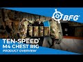 Designed as an ultralight fighting load with built in Ten-Speed magazine pouches in the front, 3 x 3 MOLLE fields on each side to add additional pouches or medical gear, and a large internal document pocket. Available in M4 or larger .308 size magazine versions.